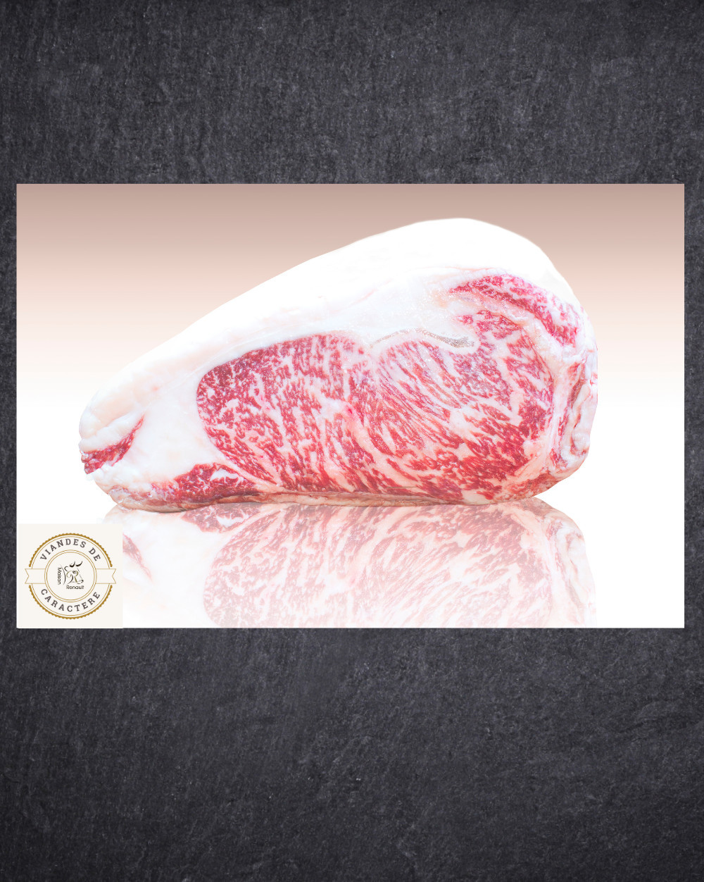 Viande avec un persillé ( insertion de gras dans le muscle) unique qui lui confère une saveur à la fois délicate et un gôut qui tient en bouche tel un grand cru.
